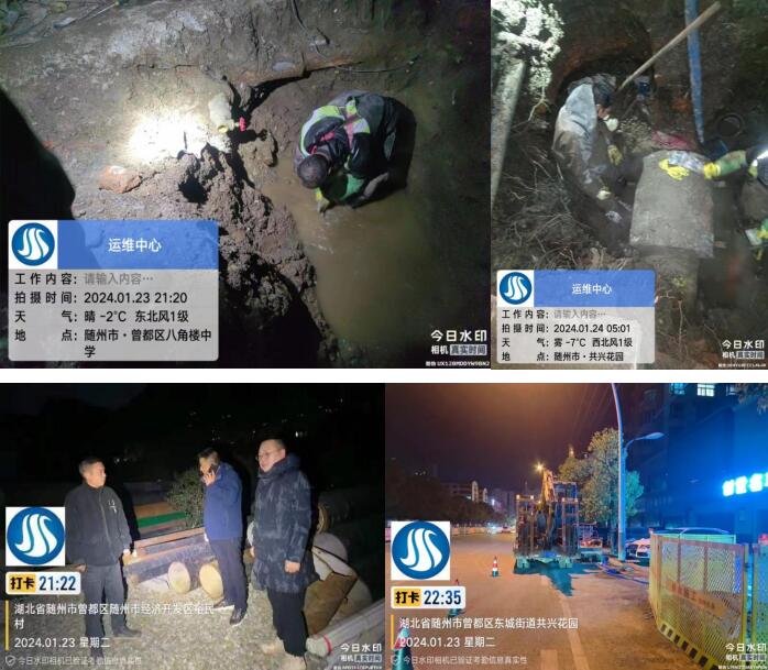 1月23日,有市民反映鐵路片區(qū)下坡處地面有積水,附近有學校,周邊住戶也較多,對市民出行造成極大安全隱患。測漏人員第一時間到場勘查,排查后發(fā)現(xiàn)漏點在下坡處拆遷區(qū)內(nèi),工作人員及時與當?shù)厣鐓^(qū)居委會和相關(guān)部門取得聯(lián)系,經(jīng)過多方協(xié)調(diào),滿足施工條件后,立即組織搶修隊伍進行開挖,在寒風凜冽的深夜,搶修人員爭分奪秒,全然顧不上他們已凍得通紅的雙手,只希望以最快速度完成改造作業(yè),最大程度減小停水作業(yè)對居民的影響。當晚21點25分歷時3小時將DN100管道漏水點搶修完畢,保障了極寒天氣下周邊居民、學生出行的安全。