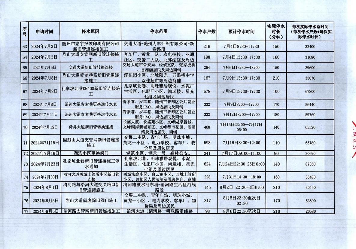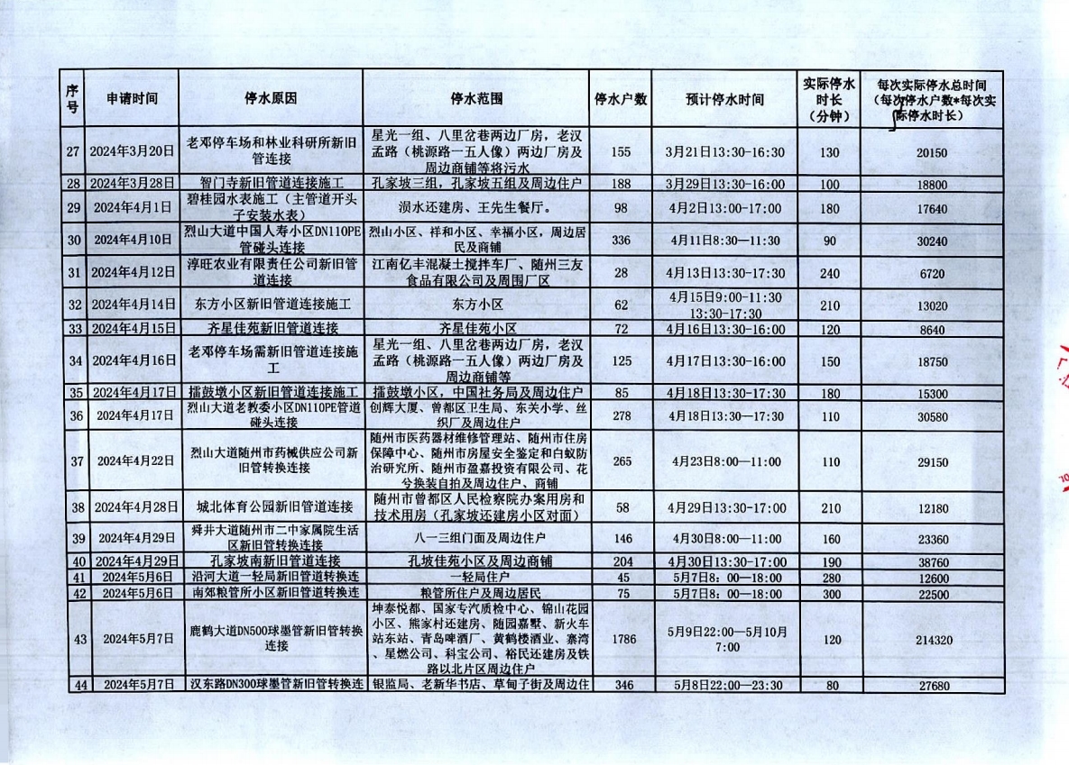 隨州市曾都區(qū)2023年9月至2024年8月計(jì)劃性停水資料
