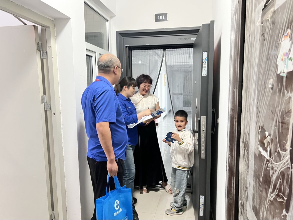 活動現(xiàn)場,水務(wù)工作人員化整為零、分組而行,輕叩一扇扇居民家門,讓 “藍(lán)色服務(wù)” 走進(jìn)萬家。“阿姨,您看現(xiàn)在用手機(jī)就能繳水費(fèi),還能隨時查用水量呢!” 在居民王女士家中,小區(qū)網(wǎng)格員手持手機(jī),指尖在 “隨州水務(wù)” 公眾號界面流暢滑動,賬單查詢、故障報修等功能演示得清晰明了,同時將用水安全知識化作通俗易懂的家常話,娓娓道來。記錄用戶信息的筆尖在紙上沙沙作響,每一個細(xì)節(jié)都彰顯著服務(wù)的溫度。這般貼心周到的模樣,惹得居民們笑意融融:“這群‘藍(lán)朋友’比外賣小哥還及時、還用心!”