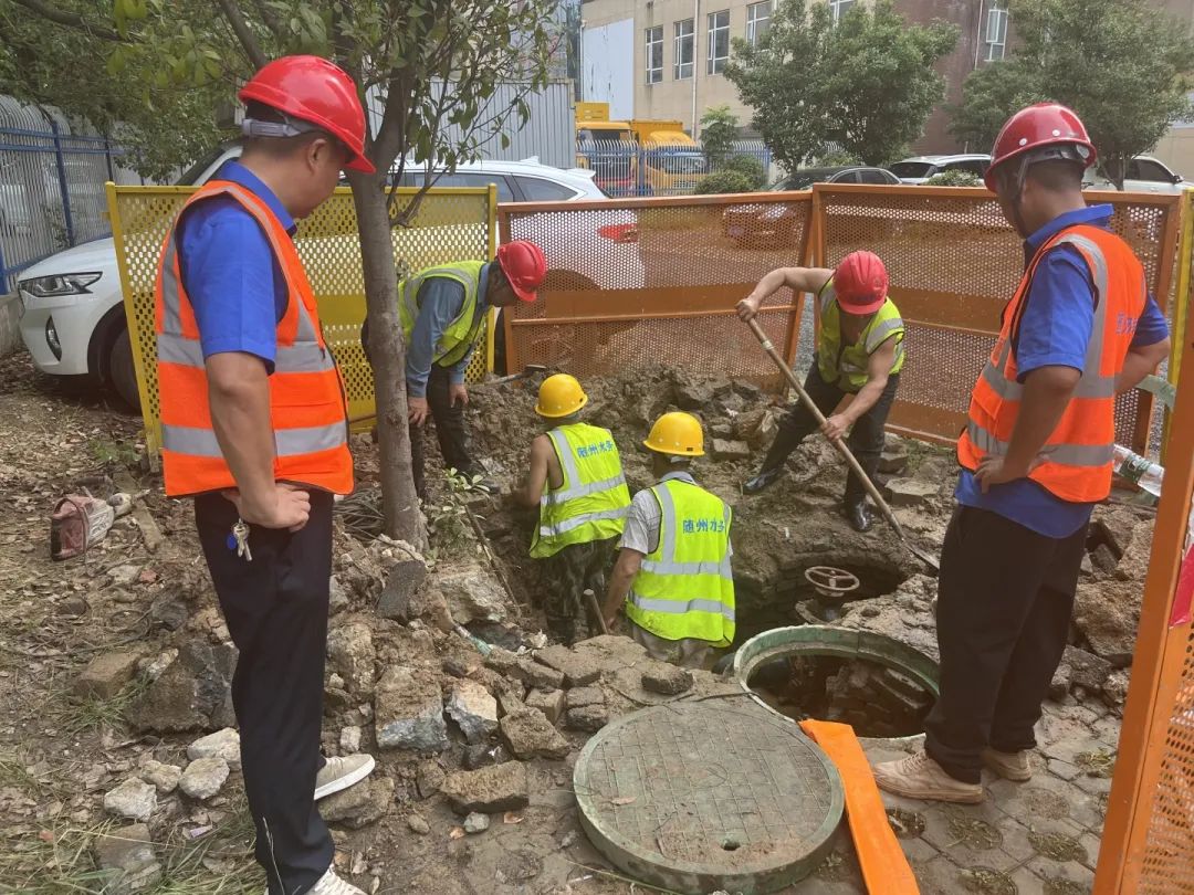 7月6日上午,客服人員接到群眾的熱線電話,清河路清河庭院附近路面大量跑水,運(yùn)維中心搶修人員十五分鐘到達(dá)現(xiàn)場,通過路面積水判斷為DN400主管道爆破,測漏人員立即精準(zhǔn)定位漏點(diǎn),關(guān)閉次處的管道會(huì)直接影響周邊黃龍五隊(duì)、清河庭院、東方小區(qū)、楚苑小區(qū)、雙橋家具大市場等,導(dǎo)致小區(qū)和企業(yè)大面積的水壓不足甚至停水??崾铍y耐,為減少管網(wǎng)爆裂等突發(fā)事件給居民帶來的用水影響,維修人員在35°的高溫下連續(xù)奮戰(zhàn)8小時(shí),當(dāng)晚7點(diǎn)半就完成維修恢復(fù)正常供水。