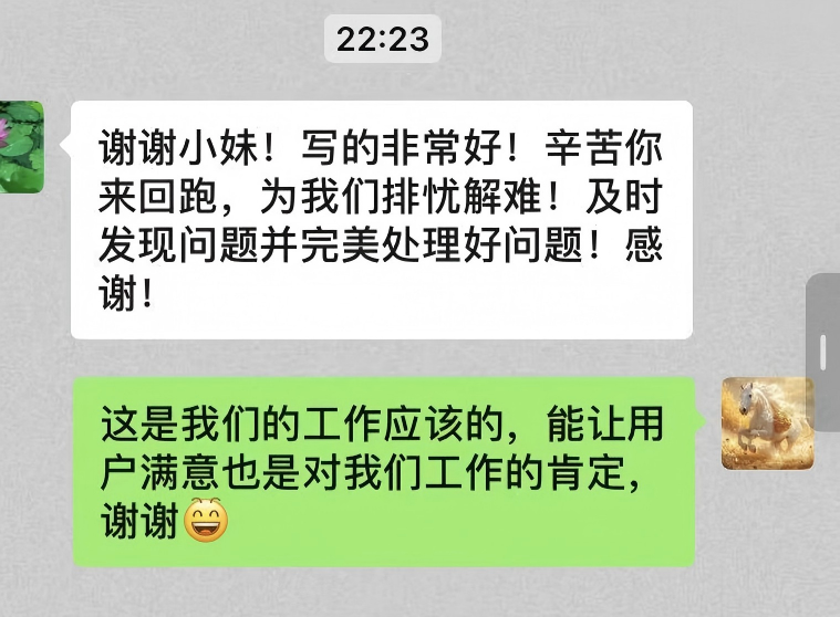 這位用戶表示,要將隨州水務(wù)員工的專業(yè)與熱情分享給身邊人,直言“你們工作時(shí)熱情的態(tài)度值得我們學(xué)習(xí)”。面對(duì)用戶的盛贊,網(wǎng)格員一句“你再表?yè)P(yáng)我就要飄了”的俏皮回應(yīng),讓這場(chǎng)服務(wù)與被服務(wù)的互動(dòng)更添溫情。